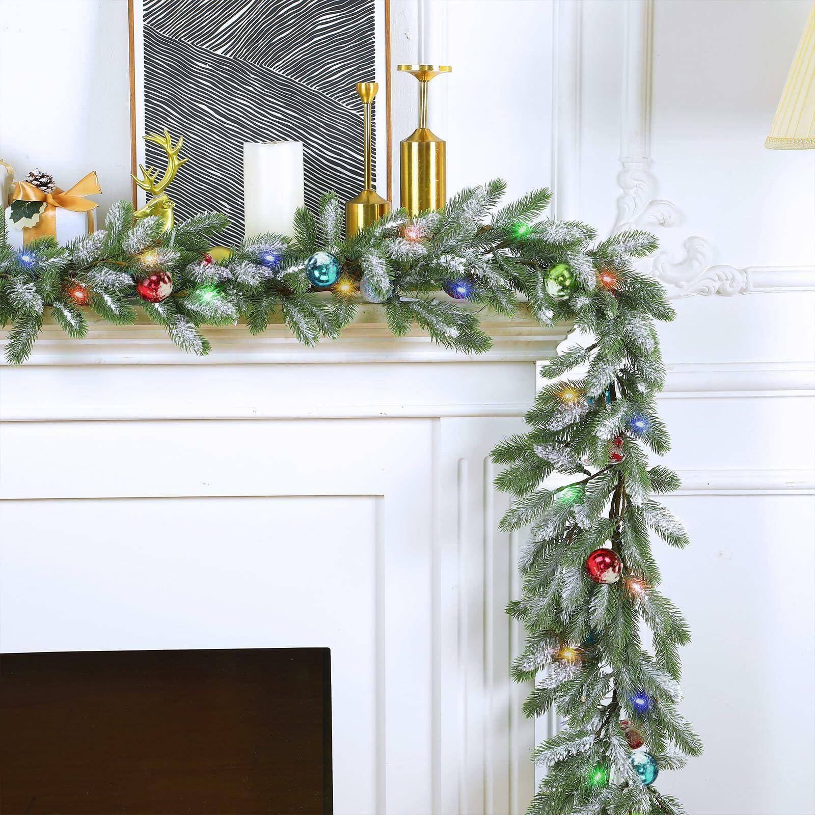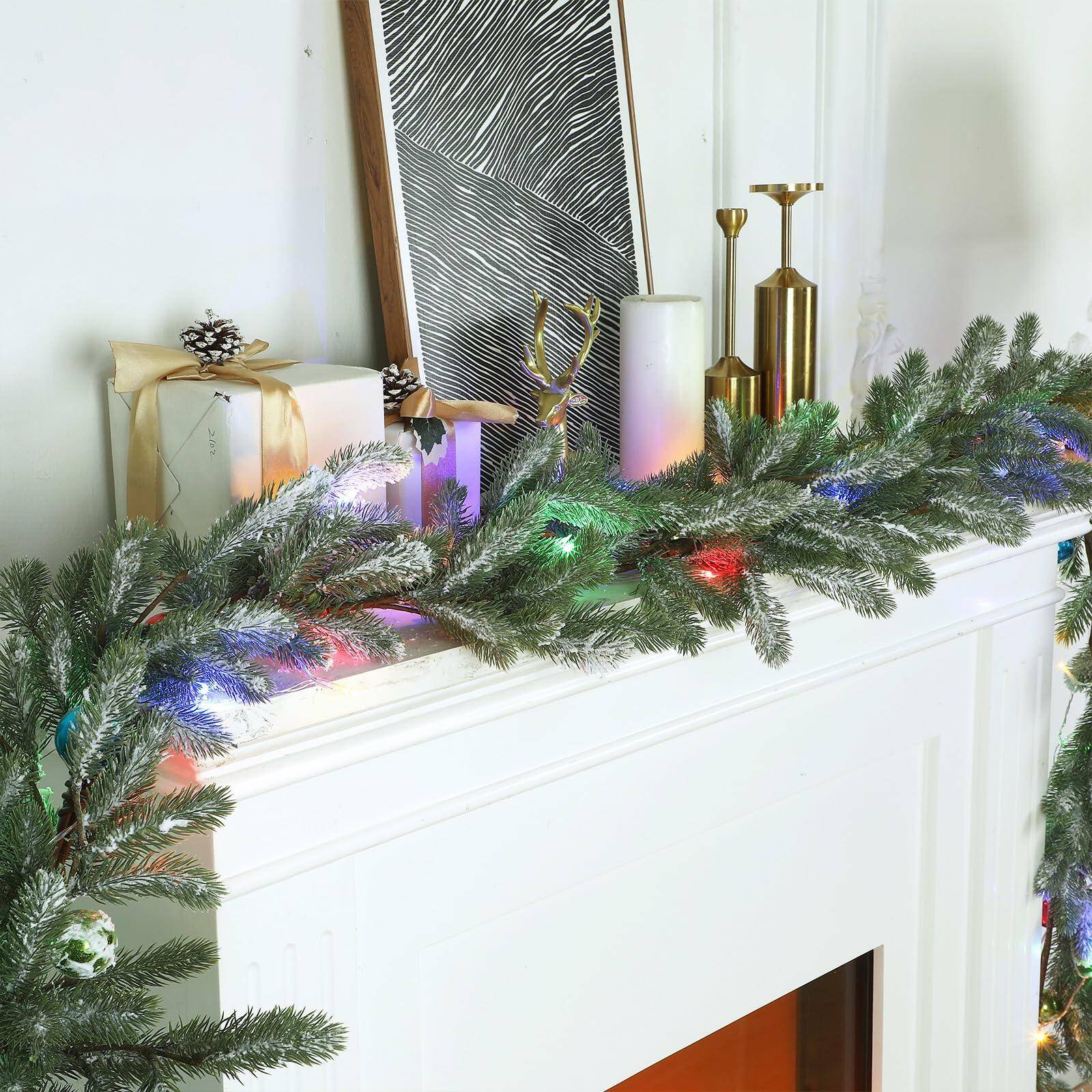 Bring winter elegance into your home with this 9FT Flocked Cedar Garland, beautifully frosted for a soft, snowy look. Pre-lit with 50 warm white LED lights, this garland instantly transforms mantels, banisters, doorways, and holiday tables into a cozy, festive scene.