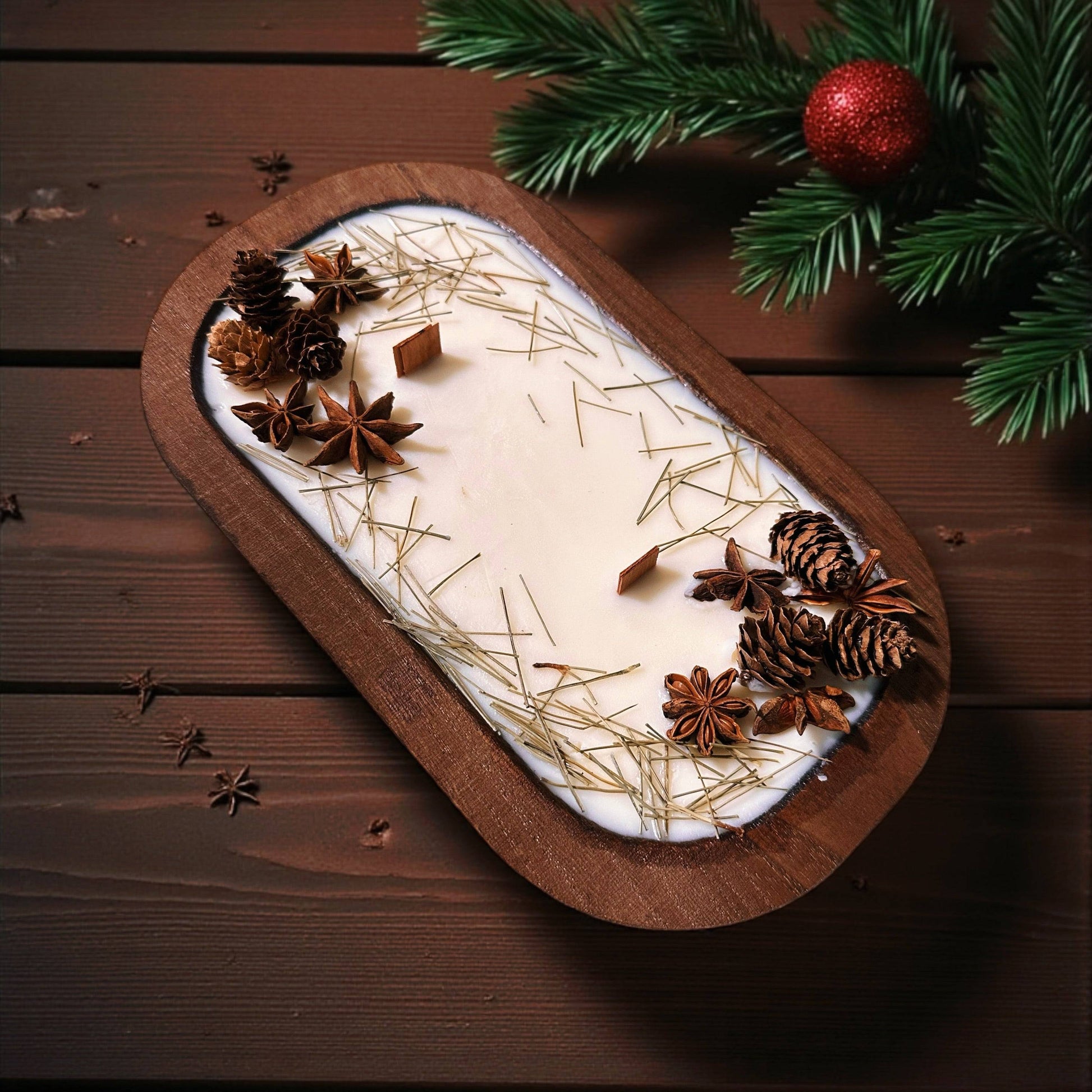 Each candle is hand-poured into a rustic wooden dough bowl, offering a cozy, artisanal aesthetic perfect for Christmas décor, winter gatherings, or thoughtful gifting. The crackling wood wick adds ambiance and a soft glow, making every burn feel like a peaceful winter evening by candlelight.