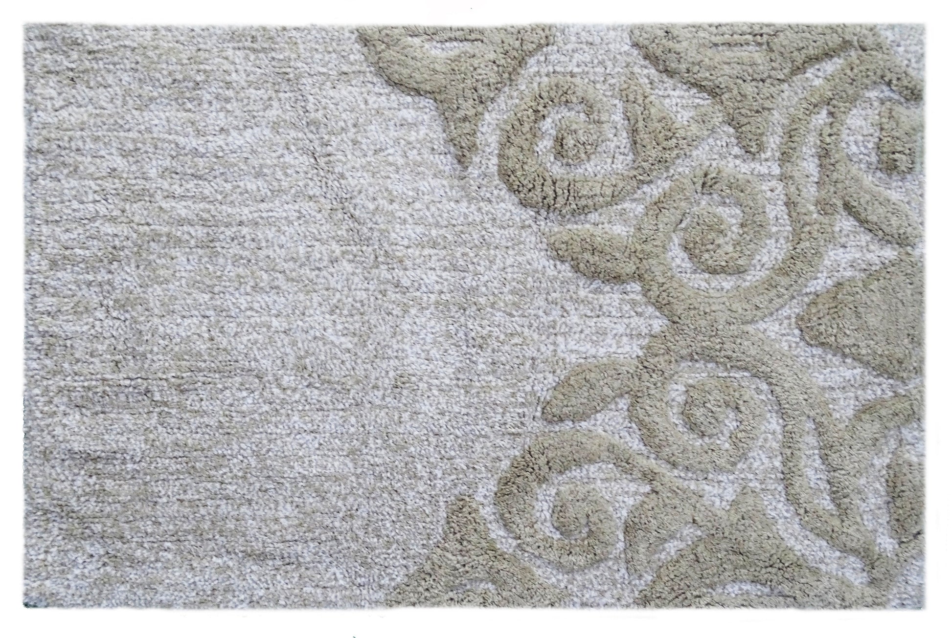 Upgrade your bathroom with this exquisitely crafted 100% cotton bath rug, designed for superior quality and lasting comfort. Hand-loomed and machine-made with meticulous attention to detail, this rectangular bath mat features a sophisticated damask pattern in elegant beige on a natural background, adding a touch of luxury to any bathroom décor.