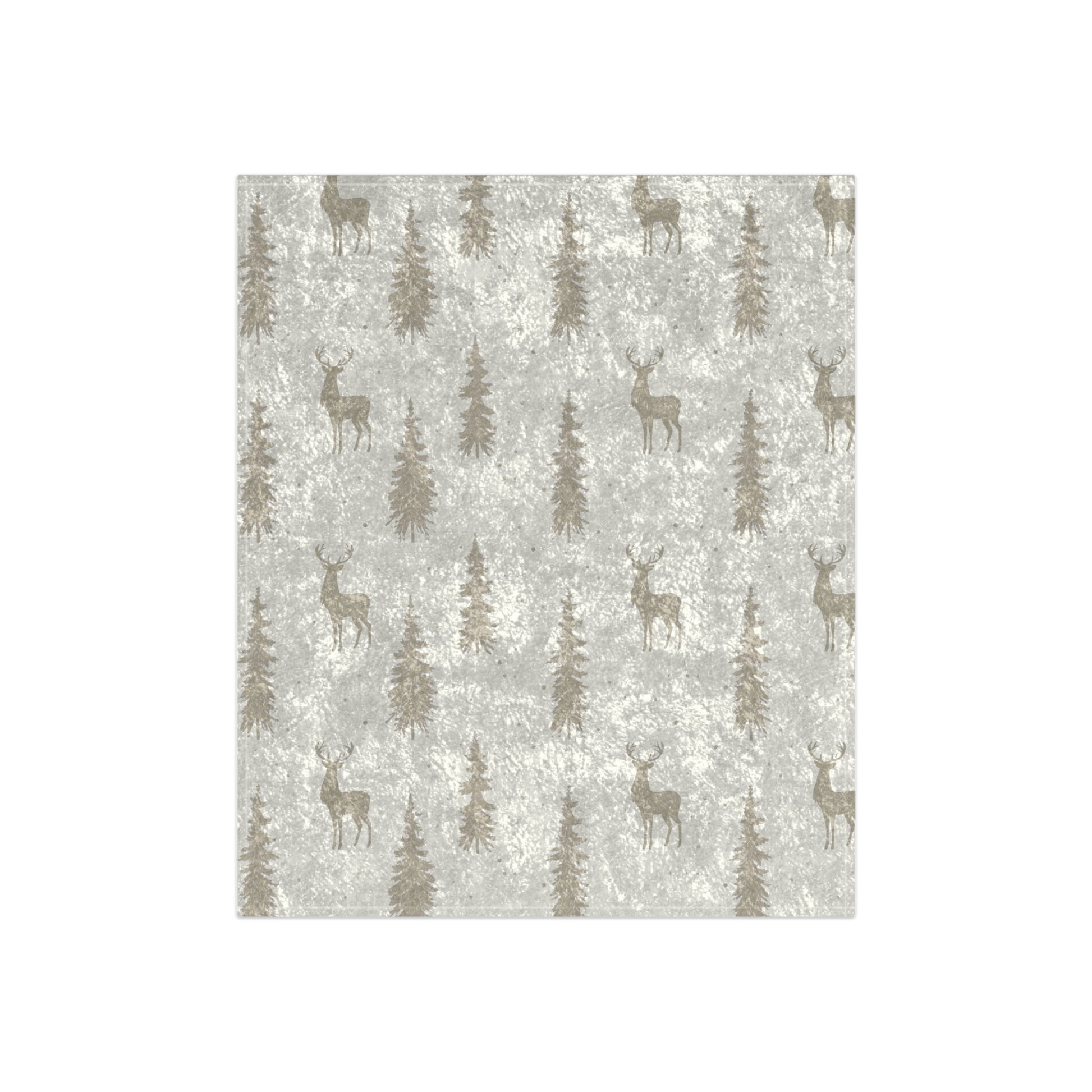 Crushed Velvet Deer & Forest Winter Throw Blanket