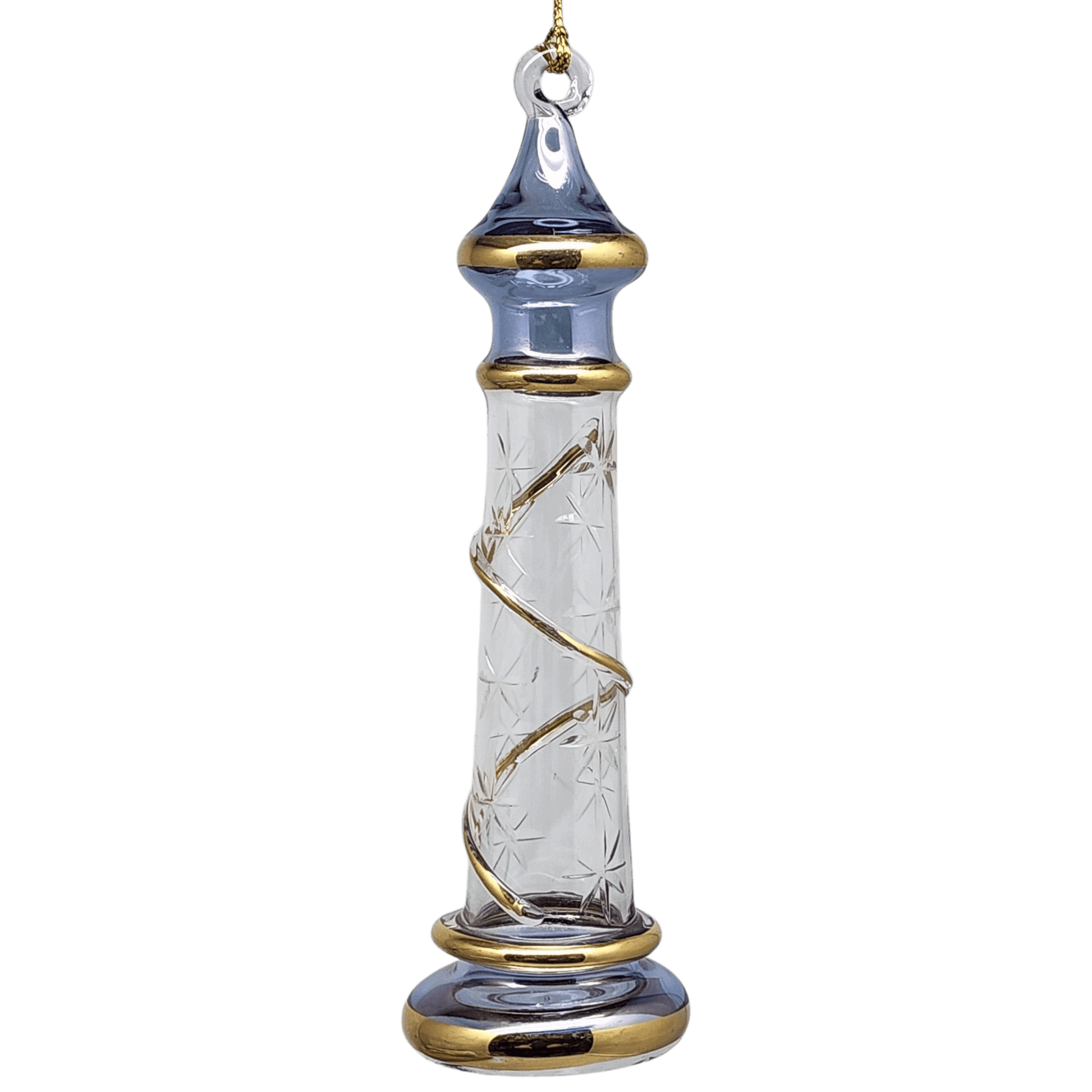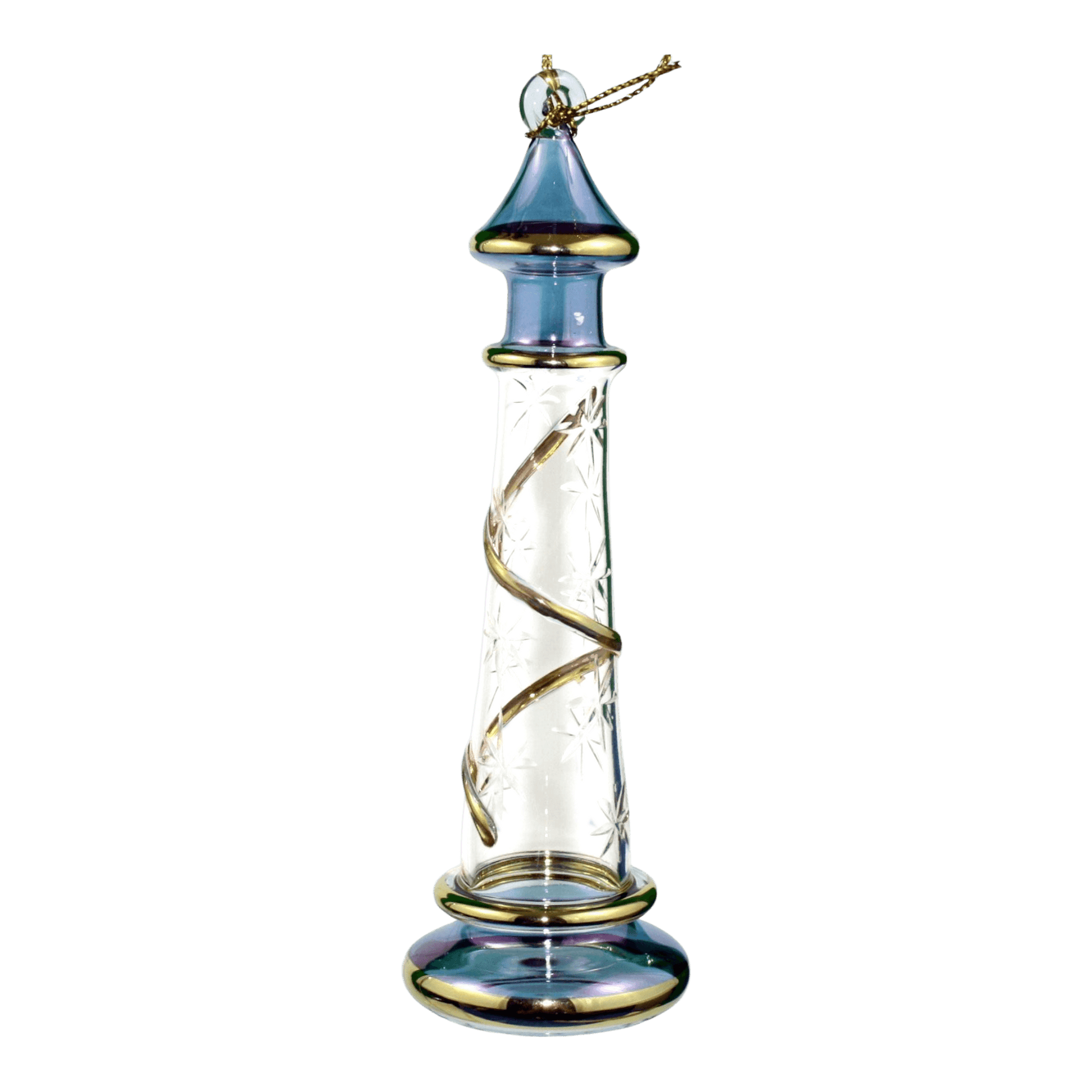 Glass Lighthouse Ornament With Gold Accent - Blue
