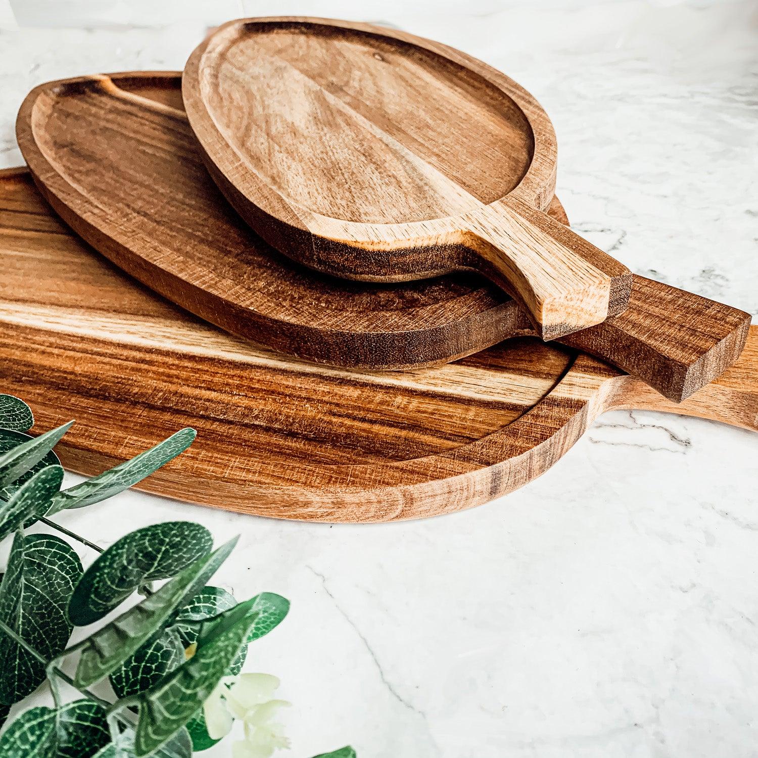 Acacia Wood Leaf-Shaped Serving Trays – Set of 3