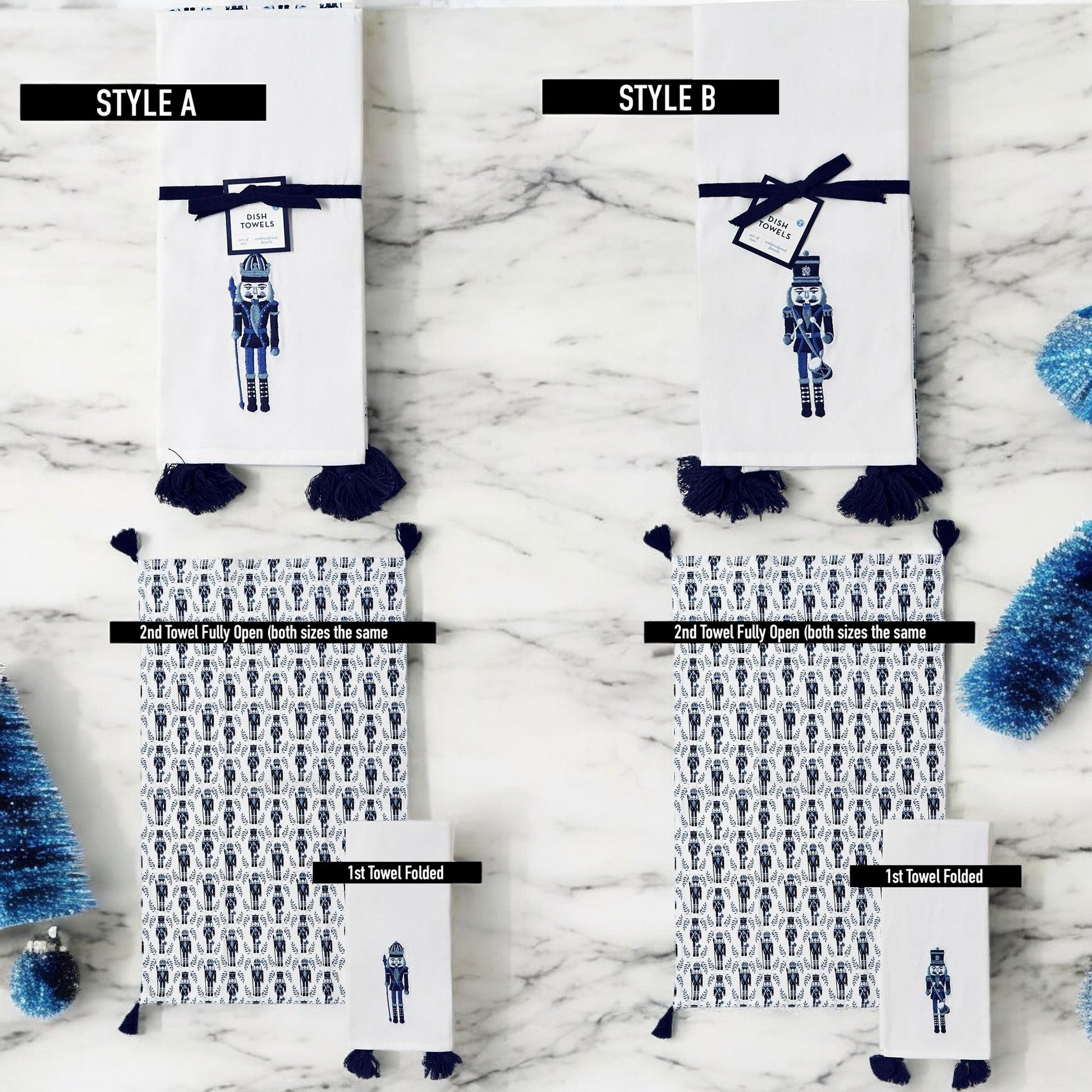 Blue Nutcracker Soldier Tea Towel Set – 100% Cotton Christmas Kitchen Towels (Set of 2)