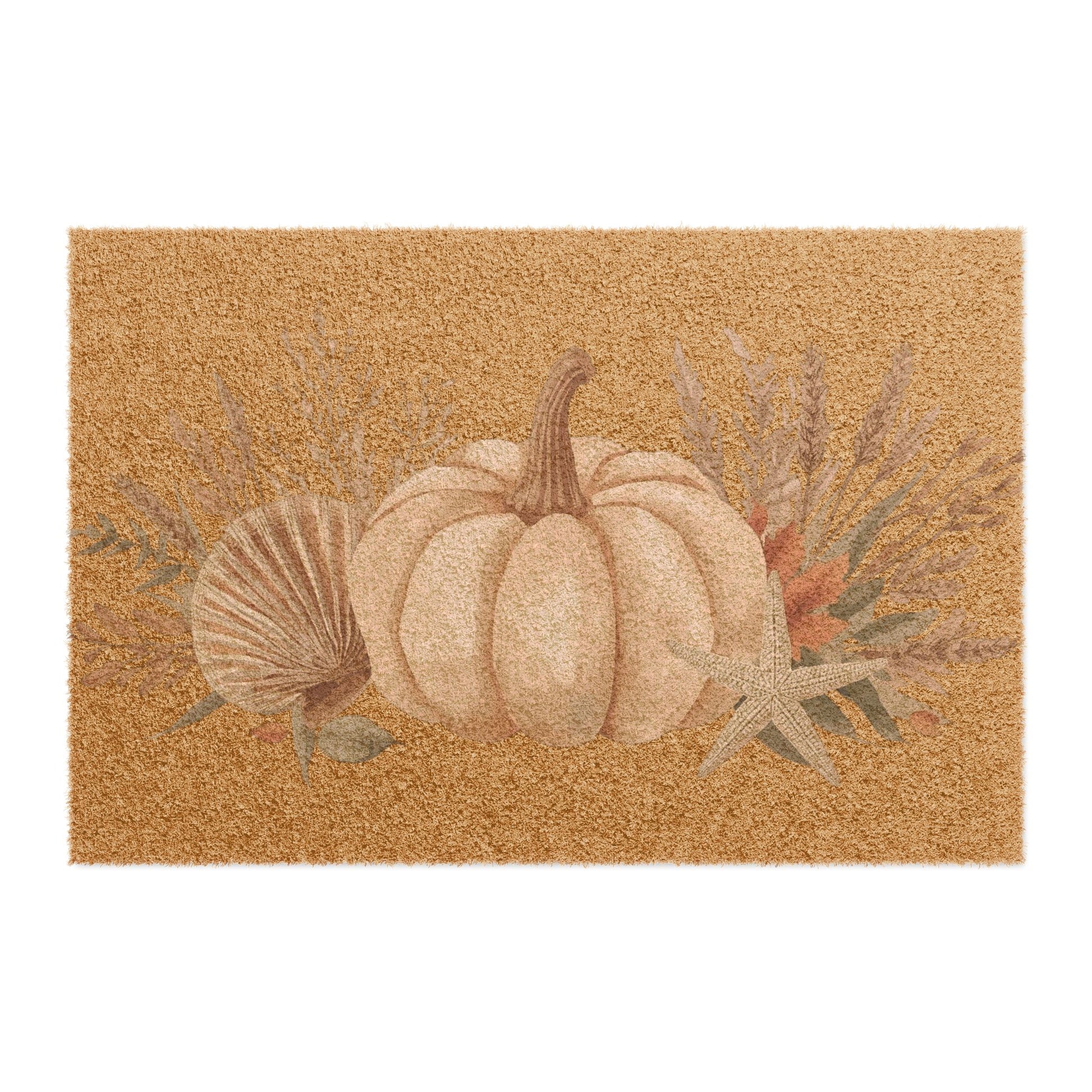 Pumpkin Fall Coastal Outdoor Mat – Rustic Autumn Welcome Doormat for Front Porch & Entryway