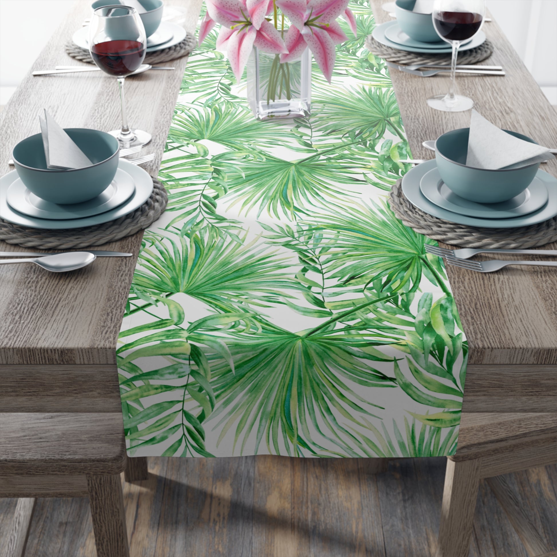 Tropical Palm Table Runner — Green Leaf Botanical Dining Decor